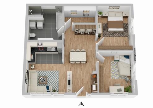 Die Wohnung bietet ausreichend Platz für ein Paar mit zwei separaten Schlafzimmern sowie einem großzügigen Bad.