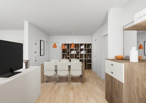 - Großzügiger, lichtdurchfluteter Wohnbereich mit Wohnzimmer, Essbereich und offener Küche auf über 60 m², nach Süden ausgerichtet
