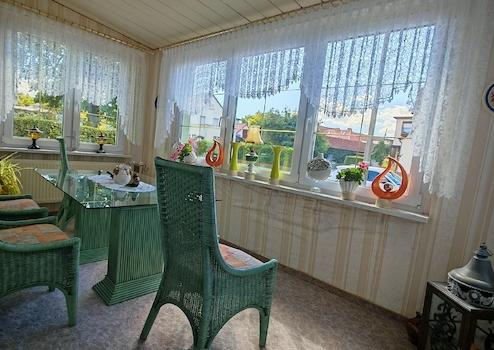 ein Höchstmaß an Privatsphäre und Abgrenzung zum Nachbargrundstück. Der angebaute Wintergarten kann problemlos in das Wohnzimmer integriert werden.. Das Haus ist ideal für die Installation einer Photovoltaikanlage geeignet.