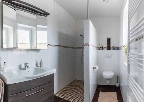 + En-Suite-Bad mit Badewanne, ebenerdiger Dusche und Fenster