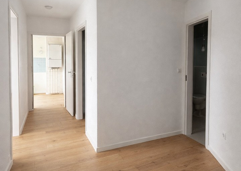 Die Wohnung wird derzeit umfassend kernsaniert und steht ab Mitte / Ende April 2026 erstmals nach vollständiger Modernisierung zur Verfügung. Sämtliche Oberflächen, Bodenbeläge und Ausstattungsdetails werden erneuert. Wände und Decken sind frisch tapeziert und gestrichen, alle Türen und Zargen wurden modernisiert bzw. neu eingebaut.