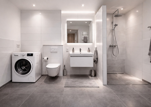 Waschmaschinen- und Trockneranschluss im Bad