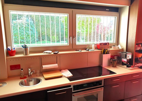 Das Haus wurde 1975 im Bauhaustil errichtet und wurde über die Jahre immer wieder renoviert, der Großteil befindet sich aber im Originalzustand. Die Bäder sind aus der Bauzeit, aber sehr gut gepflegt. Teilweise sind elektrische Rollläden vorhanden.