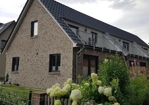 Helles Endreihenhaus in hochwertiger Ausstattung über zwei Geschosse mit offener Küche und Fussbodenheizung mit Wärmepumpe, Abstellfläche im Spitzboden, großzügige Dachterrasse, Gartennutzung, Pkw- Stellplatz.