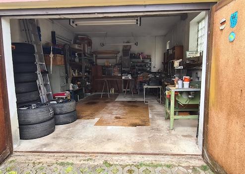 An den Innenhof grenzen eine Terrasse, zwei Garagen und ein kleines Nebengelass mit Grill-Kamin und weiterem Abstellraum.
