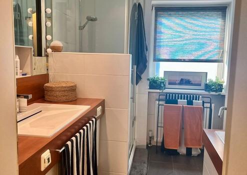 Das Badezimmer ist hochwertig ausgestattet und verfügt sowohl über Badewanne als auch Dusche sowie eine elektrische Fußbodenheizung, die zusätzlichen Komfort bietet. Die gesamte Wohnung befindet sich in einem sehr gepflegten Zustand. Die Heizkörper sind mit modernen Smarthome‑Thermostaten ausgestattet, wodurch sich der Energieverbrauch komfortabel und effizient steuern lässt.