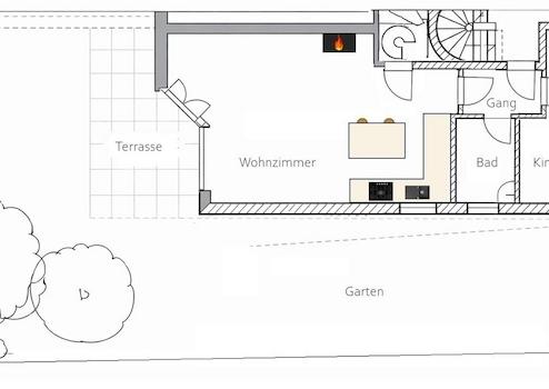 Im Erdgeschoss erwartet Sie ein lichtdurchfluteter ca. 38m² großer Wohnbereich mit offener Küche, Holzkamin und direktem Gartenzugang. Der Wohnbereich wird durch eine moderne Lofttüre vom Gang separiert, über welchen man zum Badezimmer sowie einem weiteren 21 m² großen Zimmer zur flexiblen Nutzung (Arbeitszimmer, Schlafzimmer oder Kinderzimmer) gelangt. Das Souterrain ist sowohl innerhalb der Wohnung über eine Wendeltreppe als auch über das Gemeinschaftstreppenhaus erreichbar. Der sich dort befindende ca. 26 m² große Raum eignet sich ideal als Schlafzimmer. Durch die breiten Fensterflächen mit Steingarten-Anböschung wird auf beiden Ebenen eine wohnliche Atmosphäre mit Tageslicht hergestellt. Ebenfalls im Souterrain befindet sich das zweite Duschbad mit WC sowie ein praktischer Allzweckraum mit vielfältiger Nutzungsmöglichkeit.
