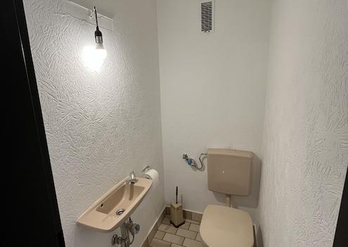 - Gäste WC separat mit Handwaschbecken, Boden gefliest
