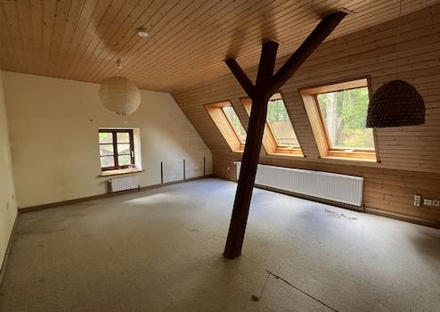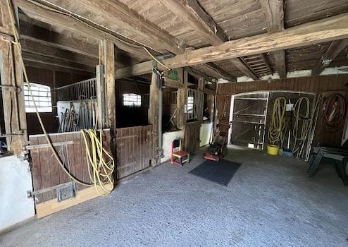 Ein weiterer besonderer Bestandteil der Hofstelle ist das ehemalige Stallgebäude, das bereits zu rund zwei Dritteln zu Wohnzwecken ausgebaut wurde. Der übrige Bereich umfasst einen alten Pferdestall und steht Ihnen zur alleinigen Nutzung zur Verfügung. Auf zwei Ebenen bieten sich hier zahlreiche Möglichkeiten: vom Gästehaus über einen zusätzlichen Wohnbereich bis hin zu Atelier, Homeoffice oder Hobbyflächen mit viel Freiraum.
