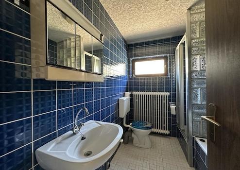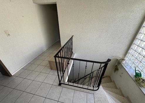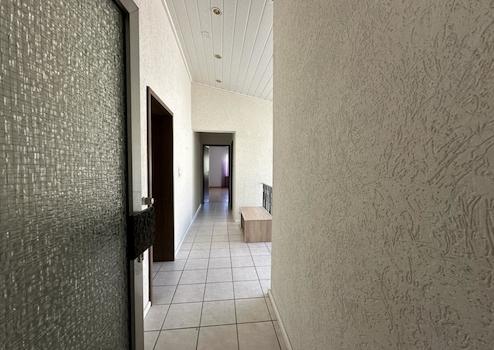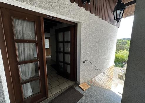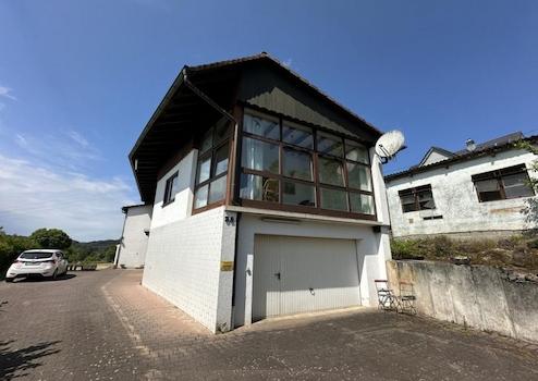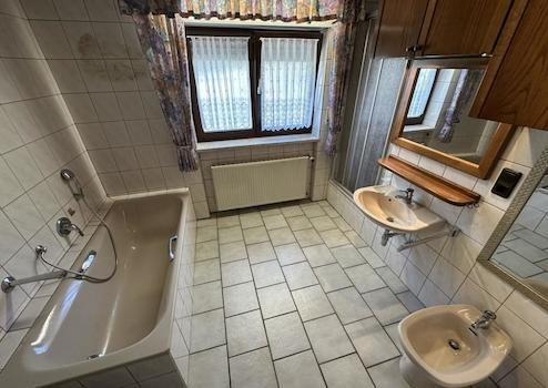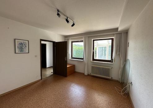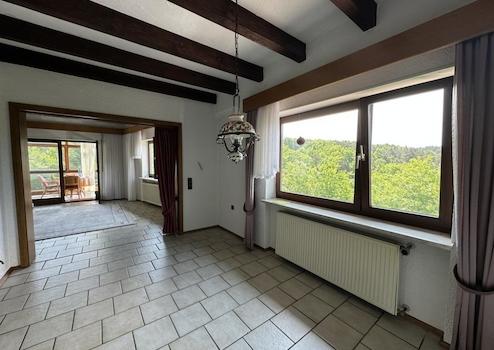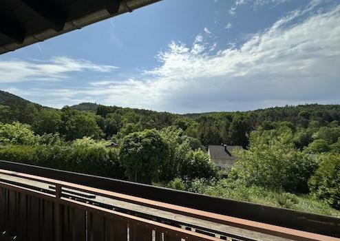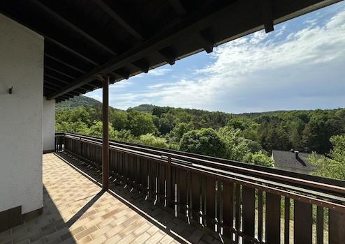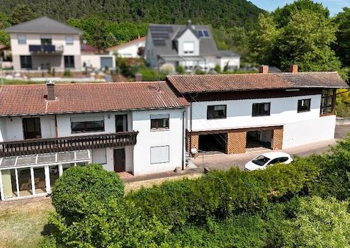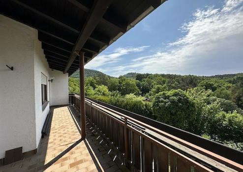 Haus 2, im Jahr 1988 in massiver Bauweise errichtet, überzeugt mit einem offenen Wohn- und Essbereich im Obergeschoss sowie Zugang zu der nach Süden ausgerichteten Loggia mit traumhaftem Panoramablick über den Naturpark Pfälzerwald und zur Burg Gräfenstein. Ergänzt wird das Raumangebot durch eine Küche, zwei weitere Zimmer, ein Tageslicht-Gäste-WC mit integriertem Abstellraum sowie ein separates Bad mit Tageslicht, Wanne und Dusche.