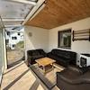 Haus 1 besticht durch einen lichtdurchfluteten Wohn- und Essbereich mit gemütlichem Kaminofen sowie einem zusätzlichen freistehenden Kaminofen. Von hier aus gelangen Sie direkt in den sonnigen Wintergarten – ein wunderbarer Ort zum Entspannen. Die Etage bietet außerdem ein Schlafzimmer, eine separate Küche, ein großzügiges Tageslichtbad mit Wanne und Dusche, ein zusätzliches Tageslicht-Gäste-WC sowie einen praktischen Abstellraum. Die geräumige Diele ermöglicht Zugang zu allen Räumen sowie zum Speicher, der über eine Ausziehleiter erreichbar ist.