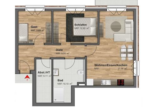 Wohnung 3: 3 Zimmer | ca. 82,00 m² | € 326.000,-