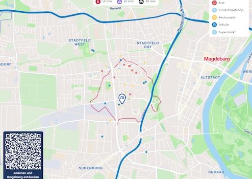 Die Wohnung befindet sich in zentraler Lage von Magdeburg - im beliebten Stadtteil Stadtfeld Ost. Es besteht ein direkter Anschluss an die Stadtautobahn, mit Anbindung an die Bundesautobahnen A2 und A14 . Der Personennahverkehr, ist durch Bus und Straßenbahn gewährleistet und der Hauptbahnhof ist fußläufig, gut erreichbar. Einkaufsmöglichkeiten für den täglichen Bedarf und medizinische Versorgung, befinden sich in unmittelbarer Nähe zum Objekt. Umliegend sind diverse Ärzte, Apotheke, Post, Dienstleister, Restaurants, Schulen und Kindertagesstätten ansässig.