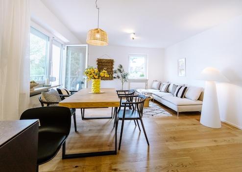 Perfekt für 2‑köpfige Familien (auch mit Hund), Paare oder Alleinstehende, die Grün, Moderne und Lebensqualität schätzen. Hier fühlt man sich sofort zu Hause!