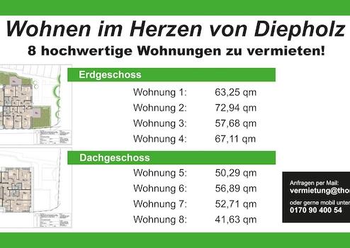 Neubau KfW-40 Erstbezug Innenstadt Diepholz – hochwertige Wohnungen mit Wärmepumpe & Einbauküche