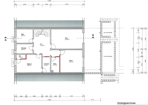 Die Wohnfläche von ca. 180 m² verteilt sich auf zwei Etagen sowie ein vollständig ausgebautes Untergeschoss, das sich durch eine besondere Qualität auszeichnet: Es liegt ca. 1,10 m über dem Straßenniveau und verfügt in jedem Zimmer über natürlichen Lichteinfall — zur Gartenseite sogar mit raumhohen, bodentiefen Fenstern. Das Raumgefühl ist dadurch keineswegs kellertypisch, sondern hell und wohnlich.
