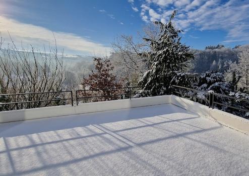 Die exklusive Architekten Villa in Trier befindet sich in einem privilegierten Wohngebiet mit nur neun Häusern und bietet eine ruhige Lage sowie einen beeindruckenden Blick über das Tal. Im Jahr 2022 wurde das Haus umfassend und hochwertig saniert. Dabei wurden sämtliche Flachdächer und die großzügigen Dachterrassen neu gedämmt und mit Alwitra-Folie abgedichtet. Ebenso wurden alle Bäder, Boden-, Decken- und Wandbeläge erneuert oder aufbereitet. Neue Aluminiumfenster mit Dreifachverglasung, eine moderne Pellet-Heizungsanlage sowie zeitgemäße Grundrissänderungen verleihen dem Haus seinen neuwertigen Zustand. Zur Ausstattung gehören Highlights wie eine Sauna, ein Schwimmbad, ein Heimkino, separate Gästebereiche und vieles mehr.Die Vorderseite des Flachdach-Hauses präsentiert sich in einem schlichten Design, während die Rückseite mit großen Fensterflächen und weitläufigen Terrassen einen freien Blick ins Tal bietet. Im Erdgeschoss erwartet Sie ein großzügiger Wohnbereich von ca. 56 m², der fließend in den stilvollen Kaminbereich (ca. 15 m²) und das Esszimmer (ca. 28 m²) übergeht. Große, nach Süden ausgerichtete Fensterfronten durchfluten die Räume mit Tageslicht. Eine vorgelagerte Terrasse mit etwa 90 m² lädt dazu ein, die Sommerabende entweder in geselliger Runde oder in Ruhe zu genießen. Der durchgehend helle Marmorboden, der im Rahmen der Sanierung aufwendig aufgearbeitet wurde, unterstreicht die hochwertige Ausstattung.Zusätzlich befindet sich auf dieser Ebene eine weitere, teils überdachte Terrasse (ca. 24 m²), die vom Esszimmer zugänglich ist und auch bei schlechtem Wetter nutzbar bleibt. Hochwertige Außenjalousien an allen Fenstern ermöglichen die individuelle Regulierung von Licht und Privatsphäre. Eine gemütliche Wohnküche mit ca. 20 m², zugänglich sowohl von der Diele als auch vom Esszimmer, ist mit einer Einbauküche und hochwertigen Elektrogeräten ausgestattet, die im Kaufpreis enthalten sind. Außerdem umfasst das Erdgeschoss ein Büro oder Gästezimmer (ca. 16 m²) sowie ein modernes Gästebad mit bodengleicher Regendusche.Über eine helle Marmortreppe gelangt man in das Obergeschoss mit fünf Schlafzimmern und zwei bis drei Bädern. Die vier Kinderzimmer (je ca. 15 m²) sind lichtdurchflutet und verfügen jeweils über Terrassenzugang sowie einen herrlichen Ausblick ins Tal. Das Elternschlafzimmer mit Ankleide (ca. 26 m²) bietet ein luxuriöses Bad en Suite mit freistehender Badewanne und Multifunktionsdusche. Hochwertiger Teppichboden prägt diese Etage, während die Bäder mit Fußbodenheizung ausgestattet wurden.Im Untergeschoss des Hauses befindet sich eine Wellness-Oase mit Umkleidebereich, finnischer und Infrarot-Sauna, bodengleicher Dusche, WC sowie einem großzügigen Swim-Spa mit Gegenstromanlage und Whirl-Funktion. Große Glasfronten umrahmen das Schwimmbad und führen auf eine private Terrasse mit Gartenanschluss. Die stilvoll eingerichtete Bar im James-Bond-Design verfügt über direkten Zugang zum Schwimmbad und zur Terrasse. Das hochwertige Mobiliar sowie die Soundanlage der Bar sind im Kaufpreis inbegriffen.Ein weiteres Highlight ist das schallisolierte Heimkino mit moderner Technik wie 4K-Beamer, High-End-Surround-Sound und elektrisch verstellbaren Ledersesseln. Es ist ebenfalls im Kaufpreis enthalten. Über eine Wendeltreppe besteht ein direkter Zugang von der Bar zur Kaminecke im Erdgeschoss.