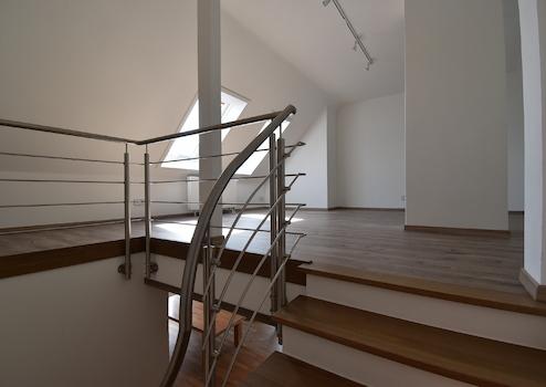 Mehrfamilienhaus, Dachgeschoss/ Maisonette, Flur, Bad mit ebenerdiger Dusche, Waschtisch, Spiegelschrank, WC, Handtuchheizkörper und Fenster, Küche mit Einbauküche, Wohnzimmer mit Zugang zum Balkon, Schlafzimmer, Kinderzimmer, Abstellraum, Arbeitszimmer, Gäste-WC mit Handtuchheizkörper