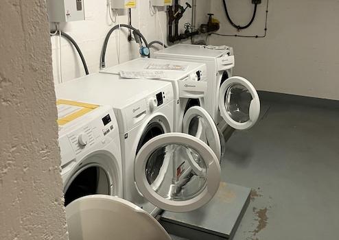 Im Keller ist ein Waschraum mit Waschmaschinen & Trockner ausgestattet.