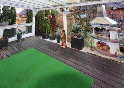 Die vorhandene Einbauküche (aus dem Baujahr) ist im Kaufpreis enthalten und funktional ausgestattet. Auf der nach Süden ausgerichteten Terrasse mit einer Größe von ca. 18 m² verbringen Sie laue Sommerabende und erweitern den Wohnbereich ins Grüne - ein herrlicher Platz zum chillen und grillen! Die elektrische Markise ergänzt den Komfort an besonders heißen Tagen.