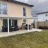 Terrasse mit Überdachung und Markise.
