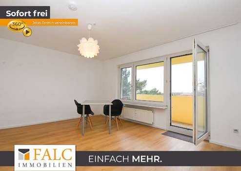 Man gelangt durch einen Flur in einen, Dank einer großen Fensterfront, lichtdurchfluteten Wohnbereich, der mit modernem Vinyl ausgestattet ist. Hier ist Platz genug für ein Bett und eine kleine Sitzgruppe mit Tisch. Vom Wohnraum gelangt man direkt auf den großzügigen Balkon mit Süd-West-Lage und hat einen schönen Ausblick über die Dächer von Kriftel.