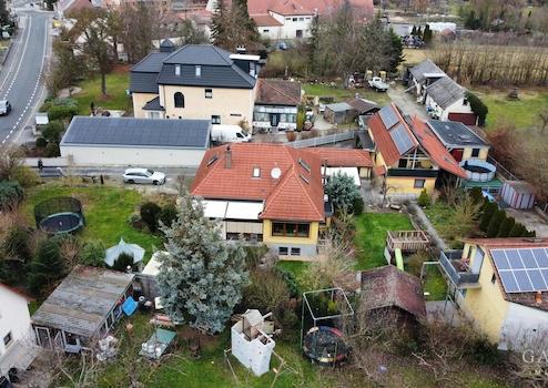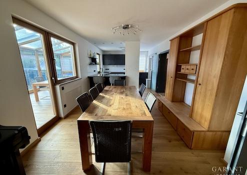 - ca. 160 qm Wohnfläche Hauptwohnung: EG mit offenem Wohn-/Essbereich, Schlafzimmer, Kinderzimmer, Arbeitszimmer, Badezimmer und Wintergarten; DG mit zwei Schlafzimmern und Badezimmer