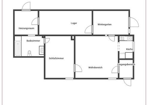 - EG-Wohnung ca. 70 qm: Wohn-/Essbereich, Küche, Schlafzimmer, Badezimmer und Wintergarten