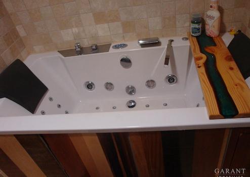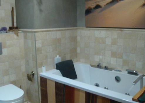 Whirlpoolwanne, begehbare Dusche, Boden- und Wandbelag