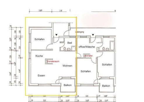 Die Wohnung war ursprünglich als 3-Zimmer-Einheit konzipiert. Mit geringem baulichem Aufwand kann die entfernte Wand wieder geschlossen und die ursprüngliche Raumaufteilung problemlos hergestellt werden. Dadurch bietet die Immobilie zusätzliche Flexibilität für Eigennutzer oder Kapitalanleger.