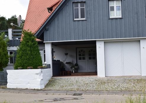 Zugehörig zu dem stilvollen fränkischen Landhaus gehört ein schön angelegter Garten, ein modernes Gartengerätehaus, zwei Garagen, ein Carport und weitere KFZ Stellplätze.