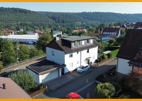 Das in 1937 massiv erbaute und in den 70er Jahren erweiterte Zweifamilienhaus mit Einliegerwohnung verfügt über rund 240 m² Wohnfläche auf vier Etagen verteilt. Im Erdgeschoss auf ca. 85 m² finden Sie eine separate Wohnung mit Wohnzimmer, drei Schlafzimmern, einer Küche und einem Badezimmer mit ebenerdiger Dusche. Das Obergeschoss bietet Ihnen ein Schlafzimmer, ein Kinderzimmer, ein Wohnzimmer mit direktem Ausgang über eine Treppe in den Garten, eine Küche und ein Badezimmer aus dem Jahr 2004. Im erst in 1999 ausgebauten Dachgeschoss steht Ihnen ein weiteres Schlafzimmer, ein Studioraum und ein helles Bad mit Wanne und Dusche aus dem Jahr 2000 zur Verfügung. Zudem ist ein vermietetes Apartment im Untergeschoss gegeben. Waschküche und Abstellräume sind in dieser Etage ebenfalls vorhanden. Für Ihren PKW stehen vier Garagen und ein Carport zur Verfügung.