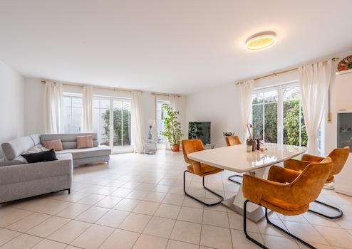 Besonders hervorzuheben ist die Flexibilität dieser Immobilie: Wer ein modernes, offenes Wohnkonzept bevorzugt, kann die Küche unkompliziert in das große Wohnzimmer integrieren.