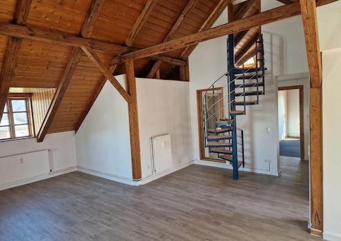 Sehr geräumige und günstige Dachgeschosswohnung in ländlicher Lage über 2 Ebenen mit offenem Wohnzimmer und "Galeriecharakter."