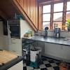 Eine moderne Einbauküche, ein Einbauschrank und ein Teilschuppenbereich sind ebenfalls vorhanden.