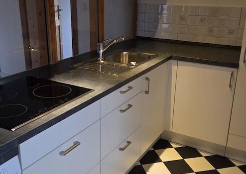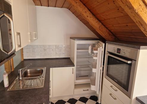 Von dem Wohnbereich kann man die moderne und vollausgestattete Küche in einem separten Raum betreten. Diese lässt, nach heutigen Maßstäben betrachtet, keine Wünsche offen.