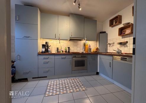 Angrenzend liegt die Küche, die als eigener, gut nutzbarer Raum geplant ist und ausreichend Stellfläche für eine Küchenzeile sowie einen Esstisch bietet