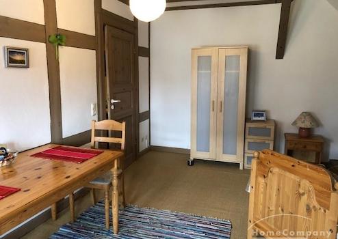 2 Zi.Whg., möbl., 2. OG (DG, links, ausschließl. mit Schrägen), 2 Schlafzimmer möglich, Innenhof zur Nutzung, Wäscheservice und Reinigung möglich. Miete 750,- €, Aufpreis für eine zweite Person (830,- €). Nur für NR.