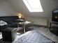 Schlafzimmer mit Bett 100x200 cm (auf Wunsch auch größeres Bett), Nachttisch,Kleiderschrank, Schreibtisch mit Stuhl, Relaxsessel.