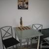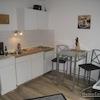 Neu renoviertes Apartment im Erdgeschoss eines Einfamilienhauses in Hannover-Ricklingen. Wohnküche mit Tisch mit Stuhl, Küchenzeile, komplett ausgestattet mit Kühlschrank, Mikrowelle, 2-Plattenkochfeld, Zugang zur ...