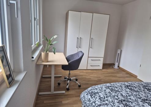 In einem modernen Neubau-Reihenhaus (Effizienzhaus 55) in 15806 Zossen OT Wünsdorf (Teltow-Fläming, südlich von Berlin) wird ein helles, großzügiges und voll möbliertes Zimmer zur Vermietung angeboten.