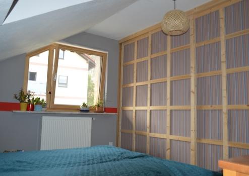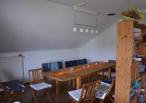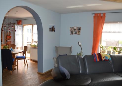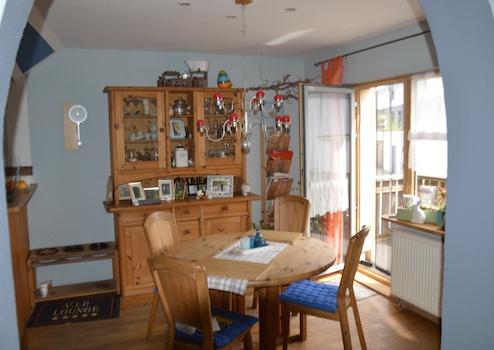 Unser 1984 in Massivbauweise erbautes Haus steht auf kleinem, pflegeleicht angelegtem Grundstück. Es umfasst 170 m² Wohnfläche verteilt auf zwei Etagen. Eine Nutzung als Einfamilienhaus für eine Familie mit Kindern ist ebenso möglich wie mit zwei getrennten Wohnungen für zwei Paare. Im Erdgeschoss finden Sie neben dem großzügigen Wohnzimmer ein Esszimmer mit offen angrenzender Küche, ein Schlafzimmer, Bad und Gäste-WC. Das Obergeschoss umfasst derzeit einen großen Wohn-Essbereich mit Küchenzeile, ein großes und ein kleines Schlafzimmer und ein Bad. Aus dem großen Raum können jederzeit durch Erstellen einer Trockenbauwand zwei Zimmer entstehen. Jede Wohnetage verfügt über einen Balkon, zum EG gehört zusätzlich eine großzügige Terrasse.
