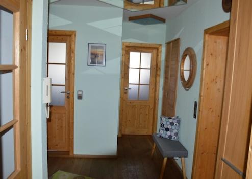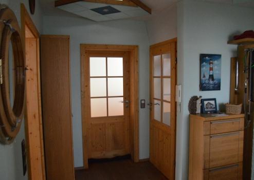 Die Räume sind liebevoll ausgestattet mit Massivholzfußböden und hochwertigen Fliesen. Die Innentüren bestehen ebenfalls aus Massivholz und sind teilweise verglast. In beiden Badezimmern gibt es eine Badewanne, das Bad im EG verfügt über eine ebenerdig begehbare Dusche mit Echtglas-Duschabtrennung.