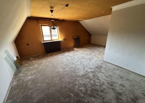 Ein westlich ausgerichteter Balkon lädt besonders in den Abendstunden zum Entspannen ein. Die Immobilie ist voll unterkellert und verfügt über einen Außenstellplatz. Die Öl-Zentralheizung wurde 2010 erneuert, ein solider Ausgangspunkt für weitere Modernisierungsmaßnahmen. Der allgemeine Zustand des Hauses ist sanierungsbedürftig und bietet somit eine hervorragende Gelegenheit, eigene Wohnideen zu verwirklichen.