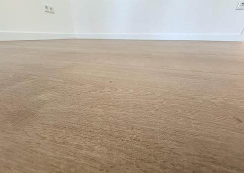 - Verlegung eines neuen Laminatfußbodens in Chalet Eiche, inkl. weißer Sockelleisten