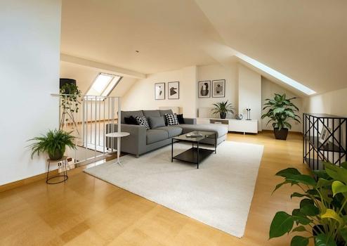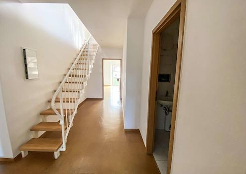 Über eine moderne Treppe erreichen Sie das obere Geschoss, das mit einem großzügigen, offenen Wohn- und Arbeitsbereich begeistert. Die offene Gestaltung schafft ein besonders wohnliches Ambiente und eröffnet vielfältige Nutzungsmöglichkeiten. Egal, ob sie diesen als Rückzugsort, Homeoffice oder zusätzlichen Wohnraum nutzen. Bei Bedarf lässt sich dieser Bereich auch abtrennen.