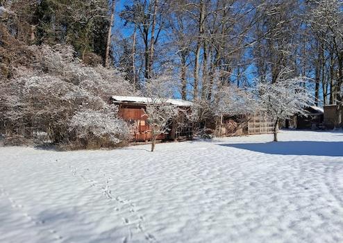 Wenn es an einem nicht mangelt ist es Platz! Dank der 4 Garagen und einer Fahrrad-/Motorradgarage, einer Werkstatt, einem ehemaligen Stall, Heuboden, Keller und Dachboden, findet wirklich alles seinen Platz. Egal ob Hobbies wie Autos-/Motorradschrauben, Eisenbahn, Sammlungen oder auch Tierhaltung wie Hühner/Enten/Schafe/Hasen und dergleichen ist problemlos möglich, da die Räumlichkeiten bereits vorhanden sind und lediglich reaktiviert werden müssten - können aber natürlich auch anderweitig genutzt werden. Auch die Haltung von Pferde wäre denkbar, da bereits ein Unterstand vorhanden wäre. Daneben befindet sich ein großer Unterstand in welchem aktuell Holzbretter/Balken in 5 Metern Länge gelagert werden. Ein ca. 8m² großer Schuppen zur Lagerung von Brennholz ist ebenfalls vorhanden.