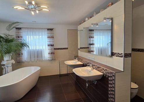Badezimmer: Dusche 118cm*98cm, freistehende Badewanne, 2Waschbecken,