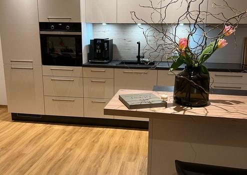 Eine große, hochwertige Einbauküche und schreinergefertigte Badmöbel sind in der Kaltmiete enthalten.
