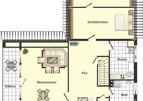 Diese Wohnung bietet eine besondere Wohnsituation: Vermieter und Mieter leben gemeinsam unter einem Dach – die Vermieter im Erdgeschoss, die Mietpartei im Obergeschoss.